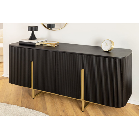 Design komód Daichi 160 cm fekete mangó A stílusos Daichi komóddal egy darab tiszta, háborítatlan természetet kap otthonába. Teste tömör mangófából készült, fekete kivitelben. Arany színű fém talp támasztja alá, indusztriális hangulatot kölcsönözve a bút