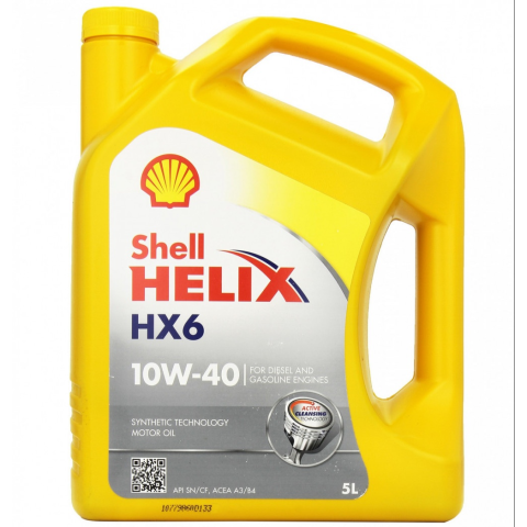 Shell Helix HX6 10W-40 motorolaj A Shell Helix HX6 10W-40 egy szintetikus technológiájú motorolaj – elősegíti a kopás és az olajiszap elleni védelmet Mindkét fajta alapolajat (az ásványit és a szintetikust is) tartalmazza, a csak ásványi alapolajokkal