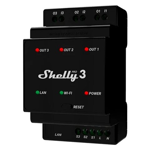 1 kép Shelly Pro 3, kapcsolómodul DIN-sínre, 3×16 A, WiFi, LAN