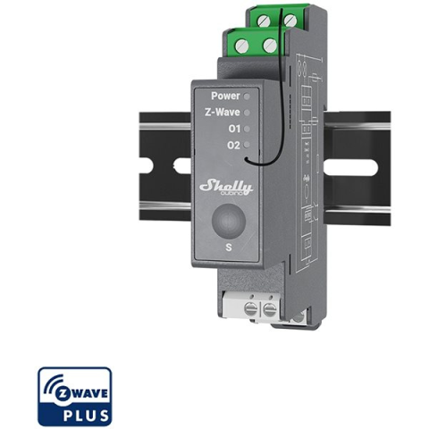 1 kép Shelly Wave 2, 2x 16A kapcsolómodul DIN sínen, Z-Wave