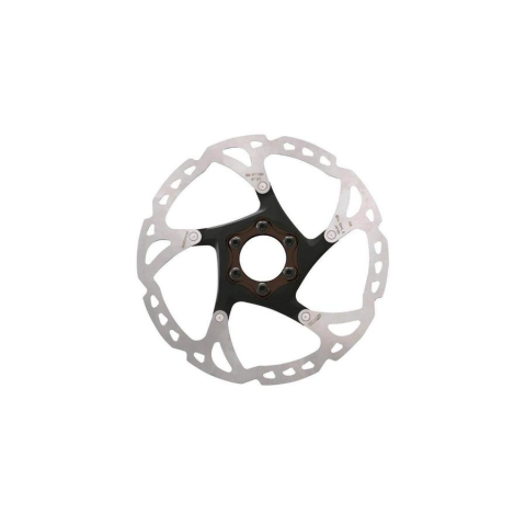 A Shimano XT szetthez tartozó 6 csavaros rögzítésű SM-RT76 féktárcsa gyantás és szinteres fékbetétekhez egyaránt, alu tárcsaküllős kivitelben