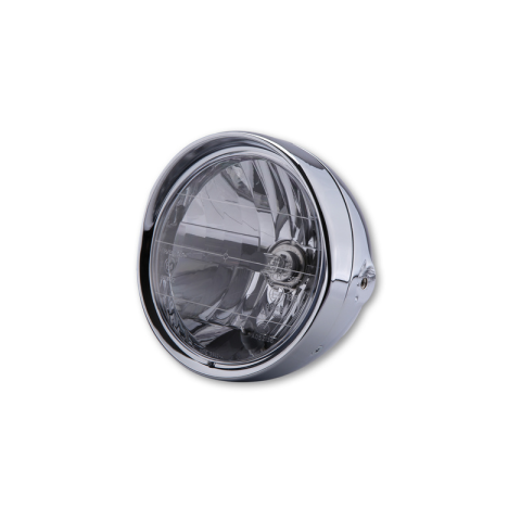 A SHIN YO 6 1/2 hüvelykes Cruiser króm fényszóró árnyékolóval a klasszikus stílusú fő fényszóró, ami tökéletes választás minden átalakítási projekthez. A tesztelt fényszóró robosztus és könnyen telepíthető.Műszaki adatok:- Fém ház- Prizmatikus reflektor- Átlátszó üveg- H4 használat parkolófényként- H4 12V 60/55W- Szerelési pont: oldalsóMéretek:- Ház átmérője összesen: kb. 190 mm- Fényszóró betét átmérője: 165 mm- Mélység árnyékolóval: 16