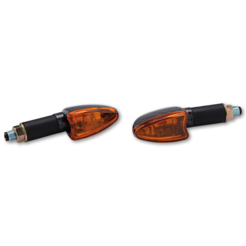 SHIN YO mini irányjelzők ARROWMűanyag ház és sárga üveg, E-jelzéssel ellátott.Méretek:A: 44 mmB: 91 mmC: 22 mmTörzs hossza: 38 mmMenetes csavar: M10Lámpák: 12V 21W BAY9S halogén izzóCsomag tartalma: 1 pár