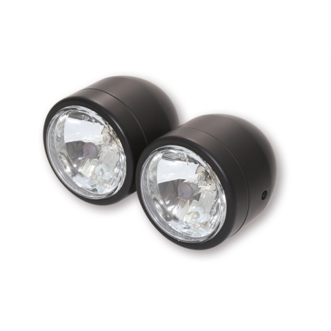 Az SHIN YO Spotlight Set egy kiváló minőségű, E-jelzéssel ellátott reflektor készlet, melynek burkolata króm vagy fekete fémből készült oldalsó felszerelési tartóval és parkolófény funkcióval. A készlet tartalmazza a 90 mm-es (3 1/2 hüvelykes) burkolatot, 218 mm átmérőt és 60 mm-es mélységet a menetes résztől. A lámpa 2 darab H4 12V 55/60 Watt teljesítményű. A készletben 1 szett található.Fontos: Csak vezetési lámpaként használható, E-vizsgával rendelke