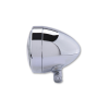 A SHIN YO Chrome headlamp BULLET egy klasszikus fejfény, krómozott fém házzal, parkoló és távolsági fénnyel, E-jóváhagyással. Az üveg átmérője 90 mm, a teljes átmérője 109 mm, a mélysége pedig 110 mm. Az izzók típusa H4 12V 60 / 55W. A csomag tartalma: 1 darab lámpa. Tartozékok: volfrám izzó: Art. No. 209-101 & 209-105, alkalmazás: Art. No. 226-089. Megjegyzés: Nem jóváhagyott fényszóróként, mivel csak a távolsági fénnyel rendelkezik E-jóváhagyással!
