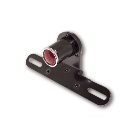 Az SHIN YO LED hátsó lámpa / féklámpa kombinációja az OLD SCHOOL TYP5 modell. Állandó rendszámtartóval és rendszámtábla világítással rendelkezik. Az LED hátsó lámpa régi iskolás megjelenésű, modern világítástechnológiával, stabil fém házban, fekete és piros üveggel, E-jóváhagyott. A hátsó lámpa méretei: ház átmérője 30 mm, ház hossza üveggel kb. 45 mm. A rendszámtartó méretei: szélesség: 177 mm, magasság: 28 mm. Műszaki adatok: fekete kábel =