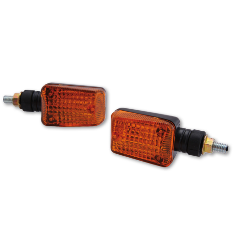 SHIN YO mini irányjelző Téglalap alakú, fekete házzal, sárga üveggel és gumiból készült karral. Méretek: Fej: 54 x 38 mm Kar hossza: 18 mm Mélység: csak 31 mm