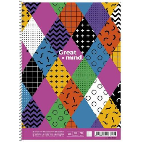 Spirálfüzet, A4+, kockás, 80 lap, SHKOLYARYK "Great Mind", vegyes - SB806513K - Spirálfüzetek A4, papír borítóval - Méltó társ a kreatív gondolatokhoz. -puhafedeles