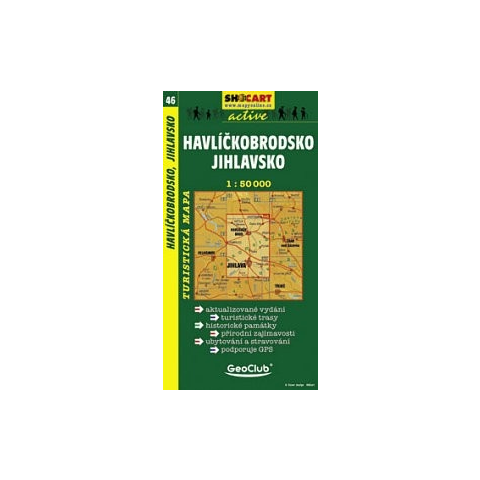 ST 46 Havlíčskobrodsko Podrobná turistická mapa doplněná popisy turistických zajímavostí. V přehledném mapovém podkladu jsou kromě stezek pro pěší vyznačeny i hlavní cyklotrasy, turistické zajímavosti všeho druhu, kempy, restaurace, rozhledová místa atd.