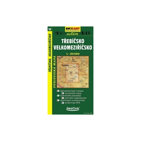 SHC 050 TŘEBÍČSKO - VELKOMEZIŘÍČSKO TURISTATÉRKÉP Turistatérkép / Wanderkarte / Hiking map Műanyag tasakban · Hajtogatott térkép · Településjegyzék · 2 nyelvű jelmagyarázat: cseh, szlovák · Turista- és kerékpáros térkép Méret: 120x230 mm Súly: 72 g