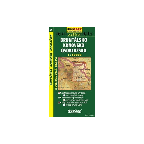 ST 59 Bruntálsko, Krnovsko, Osoblažsko Podrobná turistická mapa doplněná popisy turistických zajímavostí. V přehledném mapovém podkladu jsou kromě stezek pro pěší vyznačeny i hlavní cyklotrasy, turistické zajímavosti všeho druhu, kempy, restaurace, rozhle