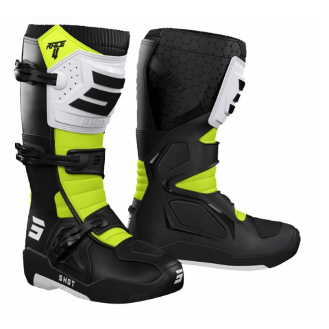 SHOT Motoros cipő Shot Race 4 fekete-fehér-fluo sárga motoros csizma 1 kép