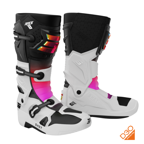 SHOT Race 8 Holographic motoros csizma fehér-fekete-rózsaszín