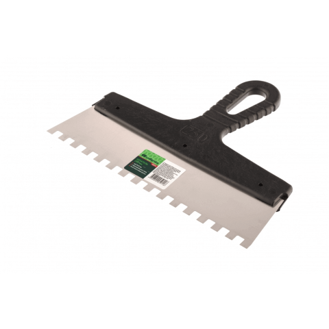 Spatulya fogazott 250mm (lekerekített fogazat 8x8mm) műanyag nyéllel// Sibrteh markolat: műanyagpengeszélesség: 250 mmanyag: rozsdamentes acélfogazás: kereített 8x8 mmEAN kód: 4606800059116