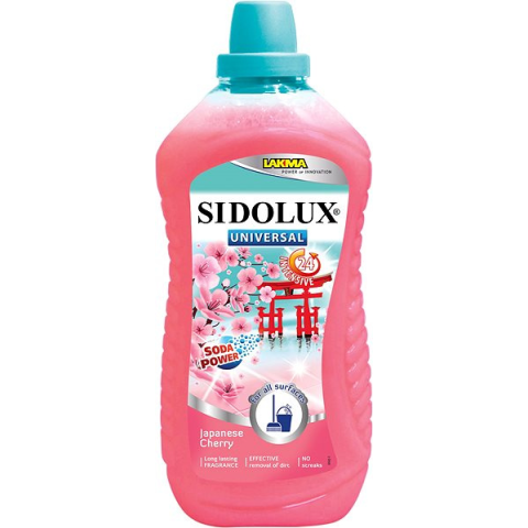Tisztítószer - minden mosható felületre és padlóra japán cseresznye illattal A Sidolux univerzális tisztítószer minden lemosható felületre alkalmas. Páratlan szennyeződésekkel szembeni erejének titka az egyedülálló Soda Power rendszer, amely lágyítja a vizet, és ennek köszönhe