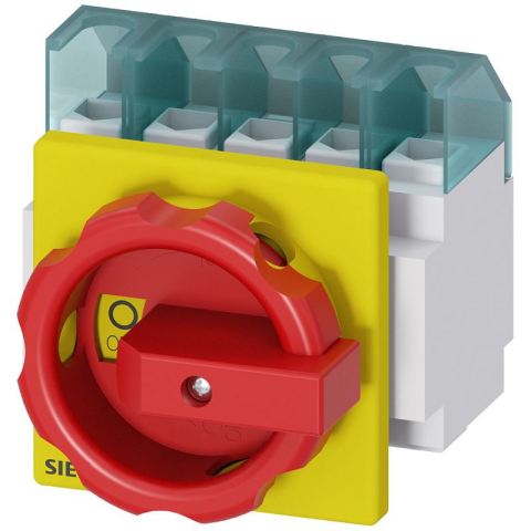 Siemens 3LD2103-2TB53 BE-KI kapcsoló, 3P, 25A, előlapra, piros/sárga SENTRON, Szakaszoló 3LD\nA SENTRON 3LD vészleállító kapcsoló biztosítja a biztonságos leállítást motorok, légkondicionáló és szellőztető rendszerek, valamint egyéb gépek számára.\n\nMűsz