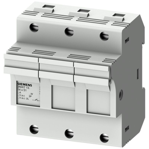 Siemens 3NW7131 bizt. tartó, 3P, 14x51, kompakt, (max. 50A) SENTRON\nA SENTRON hengeres biztosítéktartó szelektív vezetékvédelemhez készült, amely ipari üzemekben való használatra alkalmas.\n\nMűszaki részletek:\n\n Hengeres biztosítéktartó, 14x51 mm\n