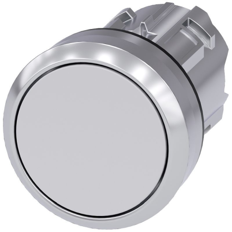 Siemens 3SU1050-0AA60-0AA0 nyomógombfej, fehér, reteszelt, fém Sirius Nyomógomb, 22 mm, kerek, fém, fényes, fehér\nA Siemens SIRIUS ACT nyomógombok és jelzőberendezések portfóliója elektromos terhelések kapcsolására és szabályozására szolgál, kiemelkedő m