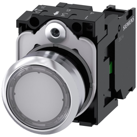 Siemens 3SU1150-0AB70-1BA0 komplett nyomógomb, átlátszó, 1NO, fém, csavaros Sirius Nyomógomb, 22 mm, kerek, fém, fényes\nA Siemens SIRIUS ACT nyomógombok elektromos terhelések kapcsolására és szabályozására szolgálnak, kiemelkedő minőségű anyagokból készü