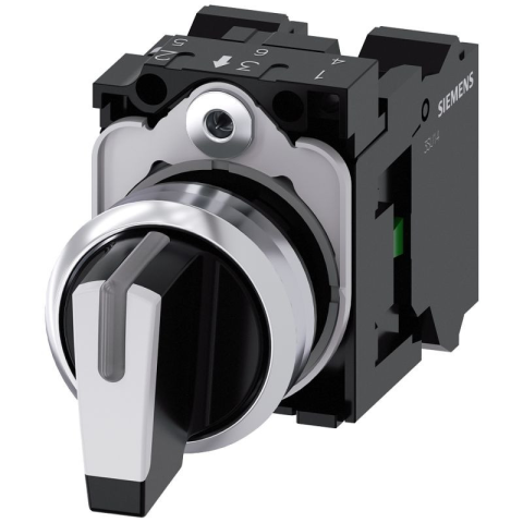 Siemens 3SU1150-2BL60-3NA0 komplett kapcsoló, 3 állású, fehér, 2NO, fém, rugós Sirius Választókapcsoló, világítható, 22 mm, kerek, fém, fényes, fehér\nA Siemens SIRIUS ACT választókapcsoló egy innovatív és robusztus megoldás, amely egyszerűsíti az ipari é