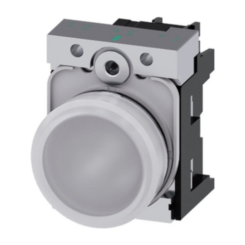 Siemens 3SU1156-6AA60-1AA0 komplett jelzőlámpa, fehér, 230VAC, fém, csavaros Sirius