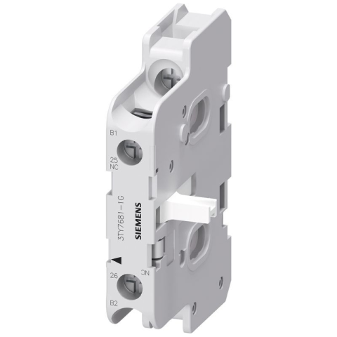 Siemens 3TY7681-1G segédérintkező a tekercs átkapcsolására, 1NC, 3TF68/69, csav. Segédkapcsoló blokk, tekercs átkapcsoláshoz egyenáramú gazdaságos áramkörben csavaros kivezetéssel 3TF57...3TF69-hez\nA segédkapcsoló blokk célja a tekercs átkapcsolása egyen