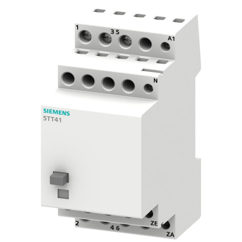 Siemens 5TT4123-0 impulzusrelé, 16A/400VAC, 3NO, 230VAC tekercs, központi ON/OFF Távirányító kapcsoló 3 NO érintkezővel központi BE/KI funkcióval\nA Távirányító kapcsoló SENTRON egy 3 NO érintkezővel rendelkező eszköz, amely központi BE/KI funkciót biztos