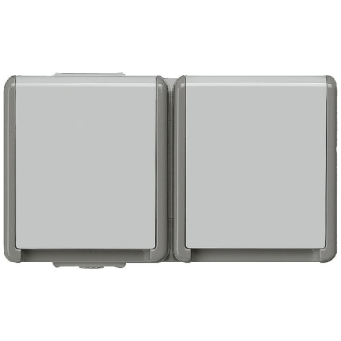 Siemens 5UB4722 dupla dugalj, falon kívüli, IP44, DELTA flat Delta flaeche IP44, AP Sötétszürke/világosszürke SCHUKO dugaszolóaljzat\nA DELTA IP44 felületre szerelhető termékcsalád tetszetős kialakítást, fokozott biztonságot és egyszerű kezelést biztosít