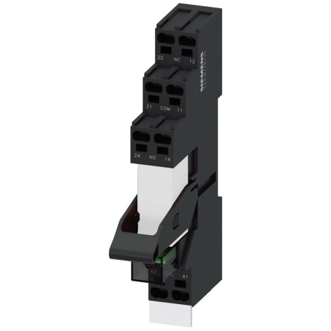 Siemens LZS:RT3D4L24 relé+foglalat, LED-modul védődiódával, címkével, 1CO/10A, 24VDC, csavaros Dugaszolható relé komplett egység\nA SIRIUS LZS dugaszolható relé galvanikus leválasztáshoz és kis terhelések kapcsolásához készült, amely szerszám nélküli huza