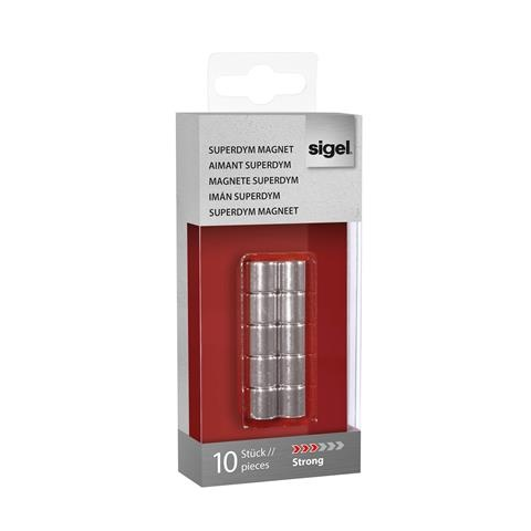 1 kép SIGEL Extra erős, henger alakú mágnes,10 db SIGEL "SuperDym", ezüst
