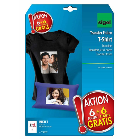 Sigel GmbH Sigel sötét pólóra vasalható matrica A4, 6+6db iskolai kiegészítő árgrafikon