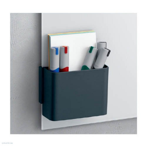 Írószertartó üvegtáblához. Sötétszürke műanyagból készült. A hozzátartozó mágnessel rögzíthető. Mérete: 120 x 94 x 51 mm. .