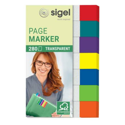 2 kép SIGEL Jelölőcímke, műanyag, 7x40 lap, 12x50 mm, SIGEL Clear Mini, vegyes szín (SIHN677)