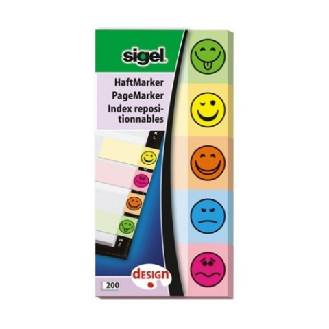 Jelölőcímke, papír, 5x40 lap, 20x50 mm, SIGEL "Smile", vegyes szín