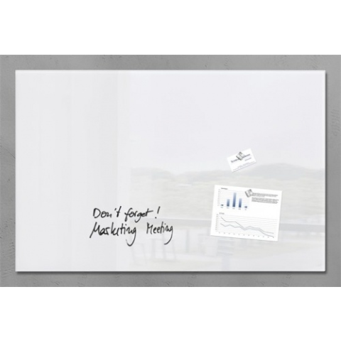 Mágneses üvegtábla, 100x65 cm, SIGEL Artverum® fehér (SDGL141) mágneses üvegfelület krétamarkerrel írható felület tartalmaz 1 db SuperDym erős kockamágnest és a felszereléshez szükséges anyagokat keret nélküli edzett üveg felület (EN 12150-1 biztonság