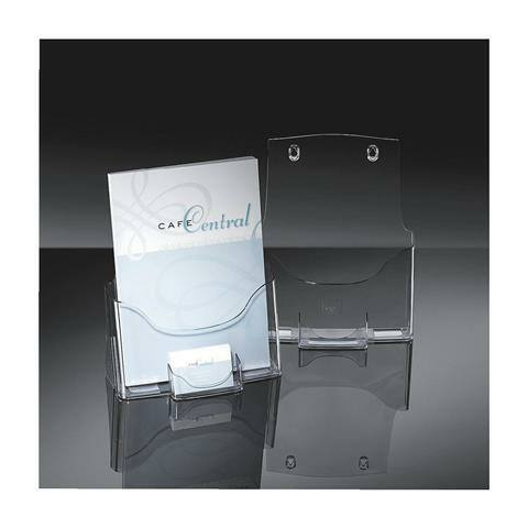 Prospektustartó, asztali, A4, névjegytartóval, 1 rekeszes, SIGEL (SLH111) szórólapok, információs anyagok, menük egyszerű és látványos bemutatására az elején névjegykártya tartó rekesszel méretek: 240 x 290 x 115 mm rekesz mélysége: 30 mm bővíthető, a