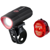 Kerékpár lámpa - első és hátsó, kormányra, 300 lm fényáram, 70 m fénytáv, 400 m láthatóság, konstrukció anyaga műanyag, tölthető akkumulátor vagy, töltési idő 2,5 óra, max. akkumulátor üzemidő 13 óra, 4 üzemmód, IPX4 védettségi fok, véletlen bekapcsolás elleni védelem, fényintenzitás szabályozása és akkumulátor állapotjelzés, 2 db lámpa, töltőkábel és adapter a csomag része, tömege 100 g, fekete kivitel A Sigma Buster 300 és Nugget Flash kerékp