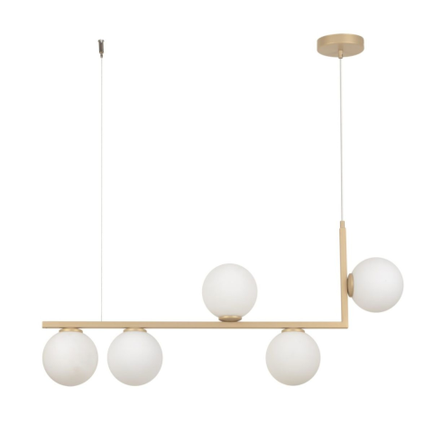 Sigma lighting modern függeszték andy fehér arany sig33612 egy modern és megbízható világítási megoldás.Ez a modell a(z) Modern stílusjegyeket hordozza, és kiválóan alkalmas Beltéri környezetbe. A gyártáshoz felhasznált Acél, Üveg anyag hosszú élettartamot biztosít. Színe: Arany, Fehér. Ez egy Függeszték típusú világítótest. Foglalattípus: G9. Maximális teljesítmény: 5x12W / G9. Fényforrás teljesítménye: 12W. Fényforrások száma: 5 db. Tartalmaz izzót: