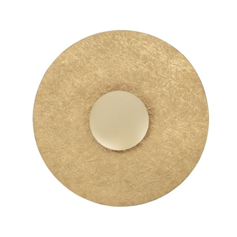 Elegáns LED fali lámpa, arany színű acél talppal és kerek, ásványi kompozit diffúzorral...