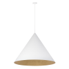 Ez a függesztett lámpa letisztult eleganciát visz a térbe fehér és arany színkombinációjával. A lágy, meleg tónusú arany belső felület finoman tükrözi a fényt, barátságos légkört teremtve. Modern és klasszikus enteriőrökbe egyaránt jól illeszkedik. Étkező..