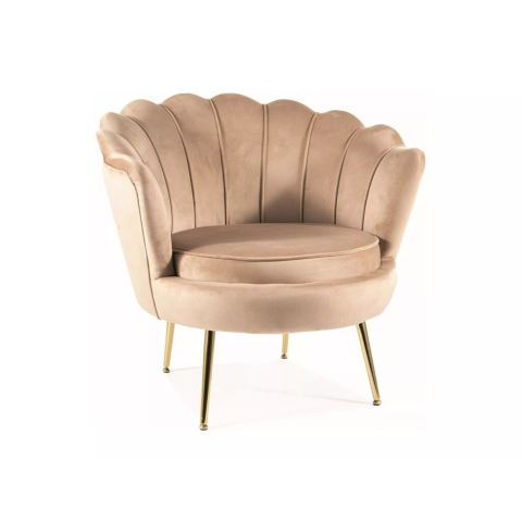 Teljes Signal Camellia Luxus Bársony Fotel Bézs Arany Kagylóhéj termékleírás