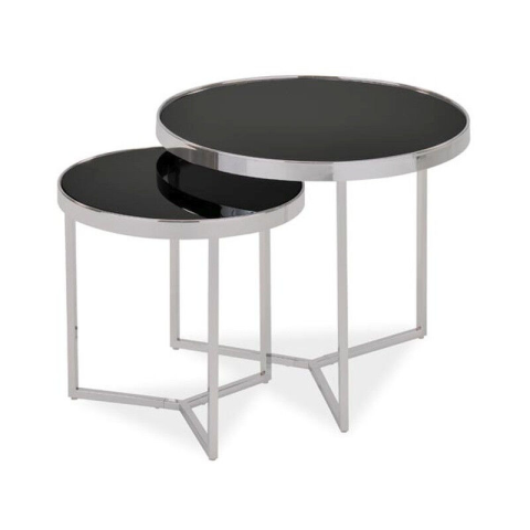 Teljes Signal Delia II Kerek Üveg Dohányzóasztal Szett Króm Vázzal Fekete termékleírás