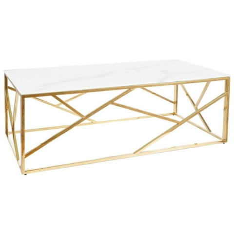 Signal Escada Luxus Márvány Dohányzóasztal Edzett Üveg Fehér Arany Geometrikus bútor termékleírás