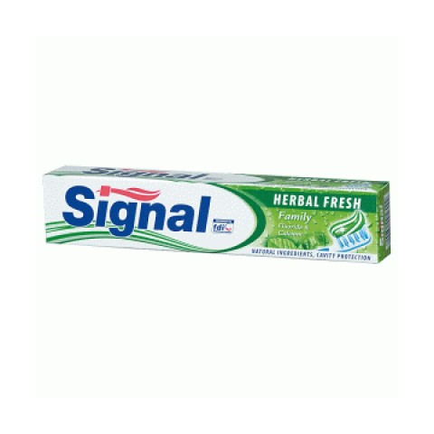 A Signal Family Herbal Fresh fogkrém olyan természetes eredetű, frissítő tulajdonságairól ismert növényi kivonatok gazdag keverékét tartalmazza, mint a menta, zsálya, mirha és eukaliptusz.