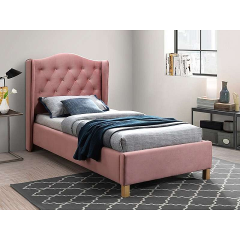 1 kép Signal Kárpitozott ágy ASPEN VELVET 90 x 200 cm szín rózsaszín/ tölgy