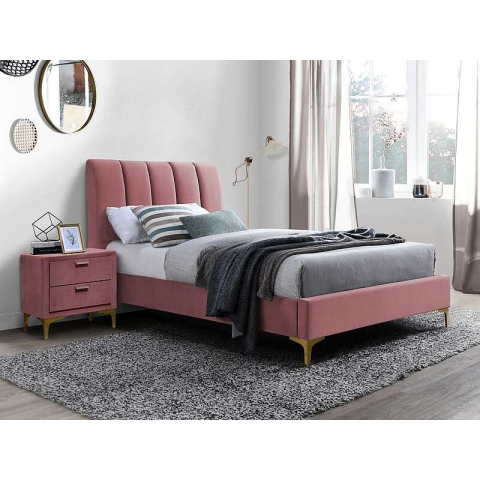 1 kép Signal Kárpitozott ágy MIRAGE VELVET 90 x 200 cm rózsaszín/arany