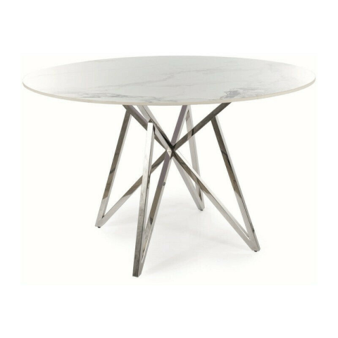 1 kép Signal Murano Luxus Kerek Kerámia Étkezőasztal Márvány Fehér Króm Modern