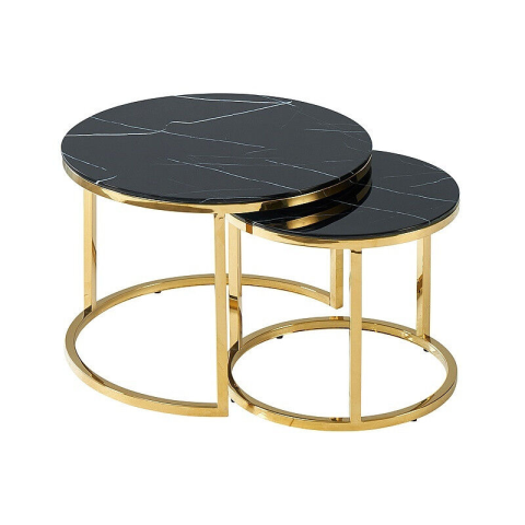 Teljes Signal Muse II Luxus Márvány Dohányzóasztal Szett Edzett Üveg Fekete-Arany termékleírás
