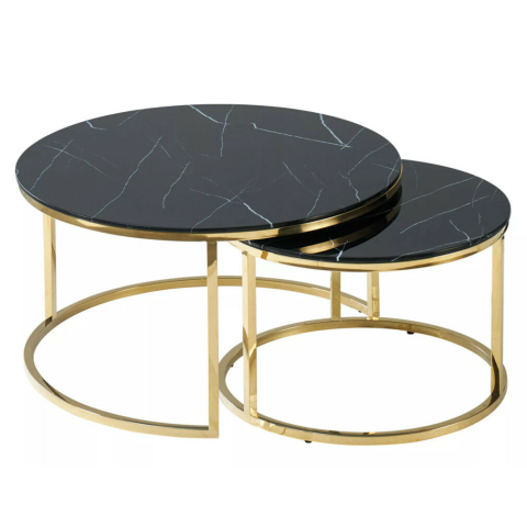 Signal Muse Luxury Márvány Hatású Dohányzóasztal Szett Edzett Üveg Fekete/Arany bútor termékleírás