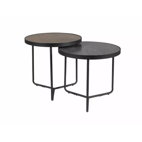 1 kép Signal Penelope Kerek Dohányzóasztal Szett Edzett Üveg Kőhatású Bronz-Szürke
